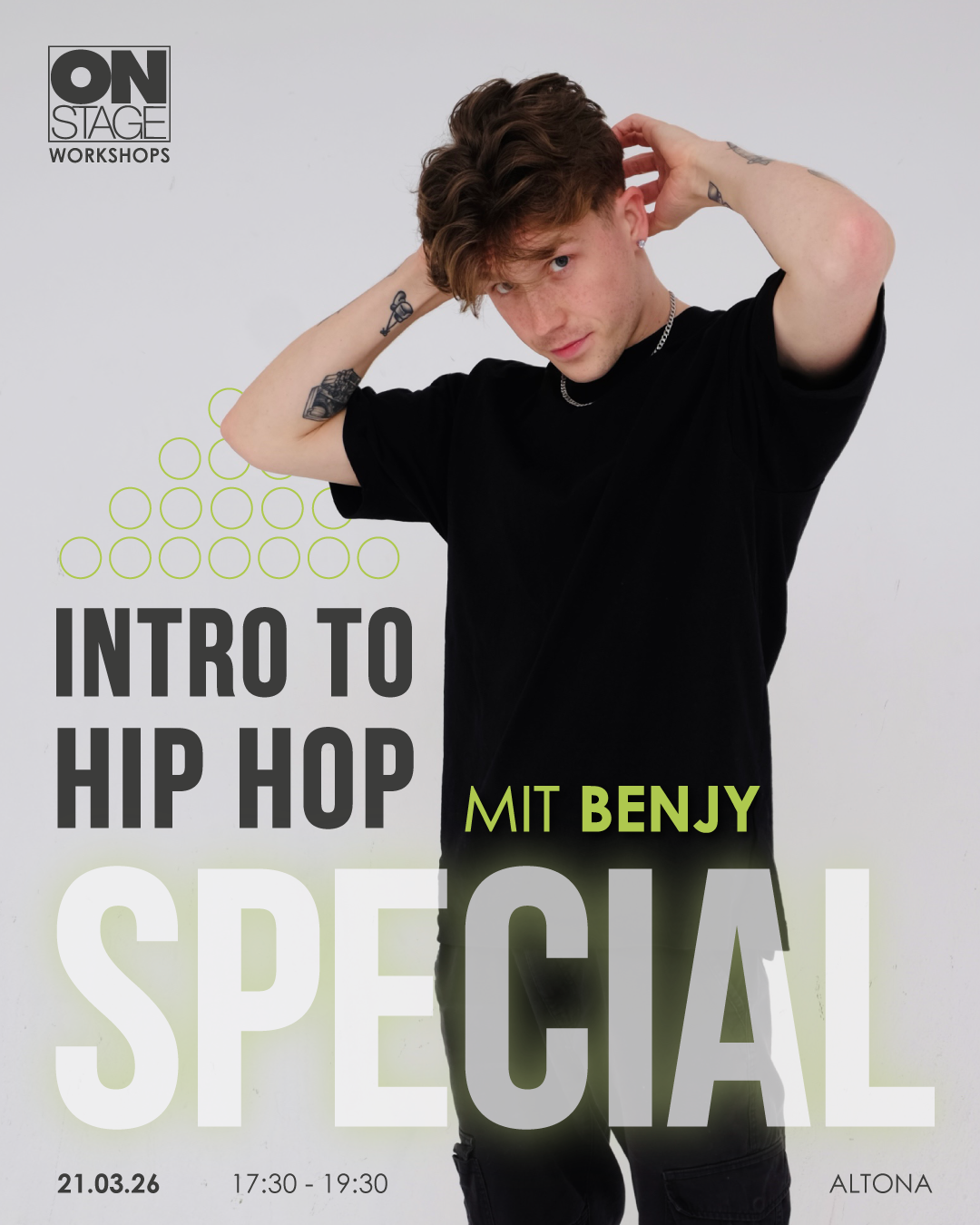 We are excited to announce the upcoming Hip Hop special with the amazing Benjy Stevens in March! It will happen in our Studio Altona & is designed for everyone who would love to start dancing Hip Hop or took already their first classes.