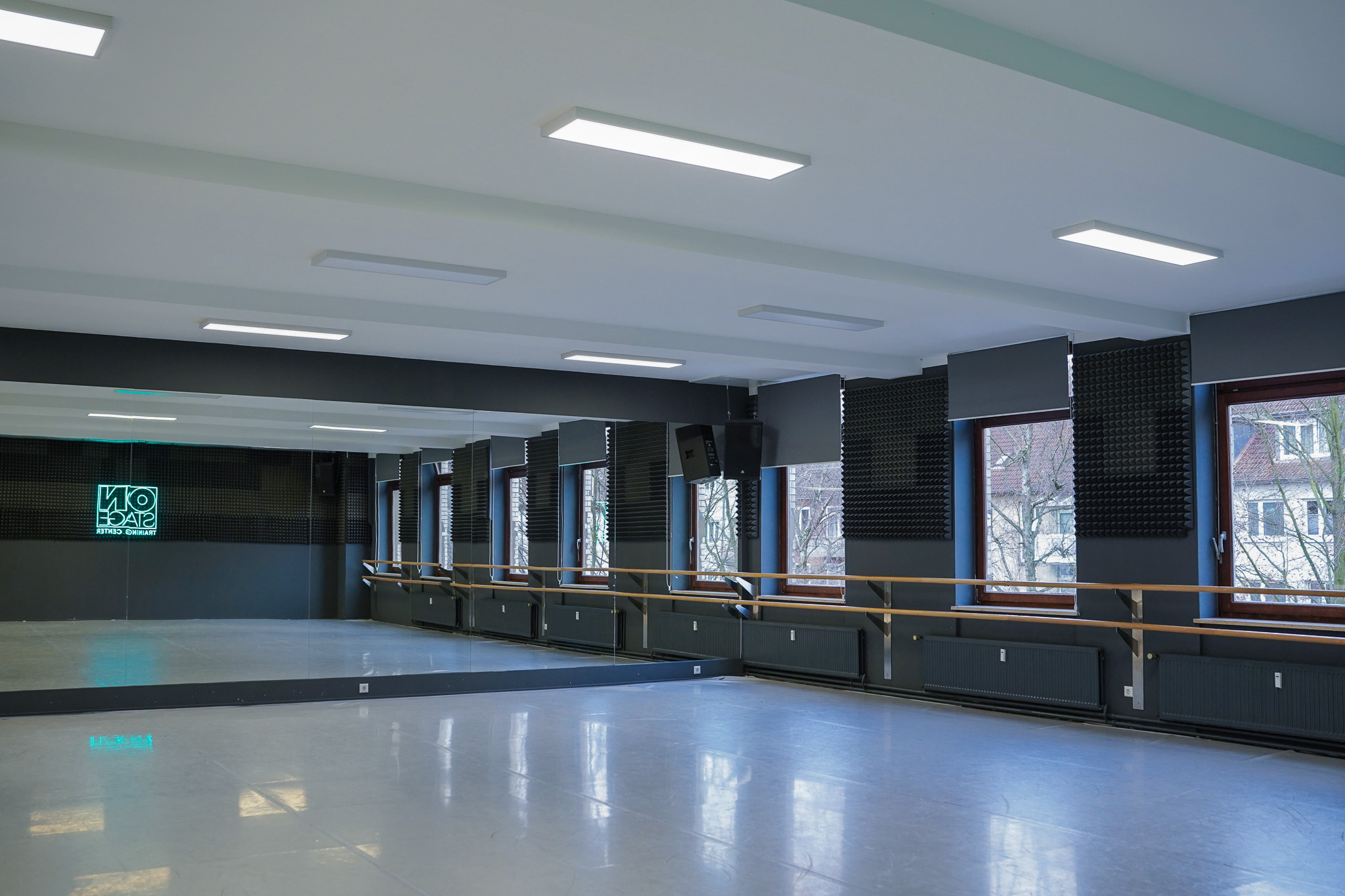 Auf ca. 1.000 m² erstreckt sich das ON STAGE Studio in der Conventstraße. Verteilt über 2 Etagen bieten wir euch ein Studio mit dem neuesten Life-Fitness Geräten, einem großen Fitness-Bereich inkl. umfangreicher Cardio-Area, sowie insgesamt drei Tanzstudios und einer Funktional-Fitness-Area.